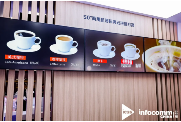 飞利浦则围绕咖啡店等场景打造高品质场景体验。展出的50英寸商用超薄标牌、高对比度防眩光的吧台屏,以及支持横竖屏自由切换、4K长时间流畅运行的86寸商用房价牌都让人眼前一亮。