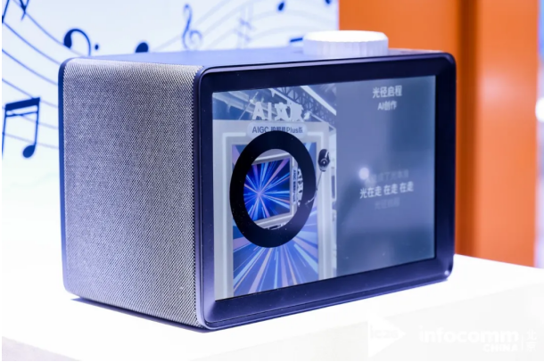其中,AIGC拍照机Pro版专为文旅景区、商业综合体及线下娱乐场景打造,用户只需拍摄人脸照片,即可快速生成融合景区IP或品牌元素的艺术写真,支持扫码带走及现场打印,成为年轻人打卡留念的互动利器。AI音幕Mini版则创新融合了AI智能作曲、音箱与高清显示屏,不仅能播放音乐时显示动态歌词,还可AI一键作曲生成专属BGM,为商业空间与家庭场景提供兼具氛围感与实用性的音视频智能解决方案。