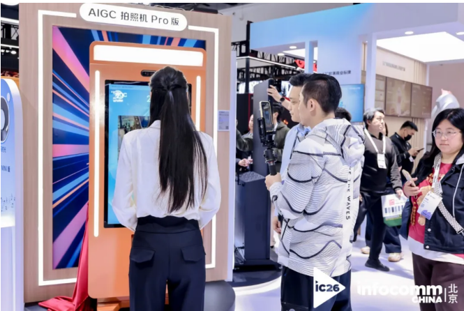 展会期间,现场组织了“AI新视界,奇迹光影秀”AIGC拍照机体验活动,开放新品体验权限,观众可排队免费拍照并领取创意照片,感受AI科技的趣味性。