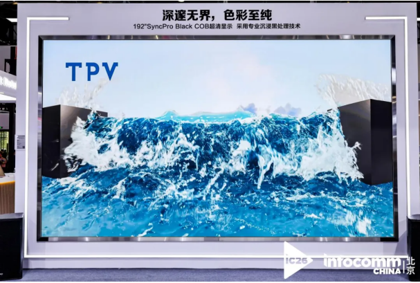 TPV主展区内,一块192英寸的SyncPro Black COB超清显示屏成为视觉焦点。该产品采用专业沉浸黑处理技术,实现20000:1超高对比度与精准色彩还原,黑场深邃纯净,无传统屏幕的灰蒙感,搭配无缝拼接工艺,为政企数字展厅、高端会议、大型展会等场景提供沉浸式视觉体验。