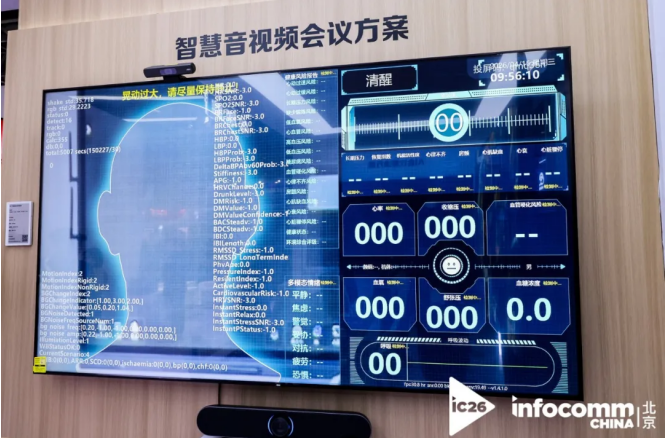 展会现场,AOC智慧会议屏内置的智能大健康筛查仪成为亮点。该系统采用“AI智能+传感器”组合,可快速实现无感健康监测与用户情绪分析,在社区健康筛查、高风险岗位情绪监测等场景中具有实用价值。