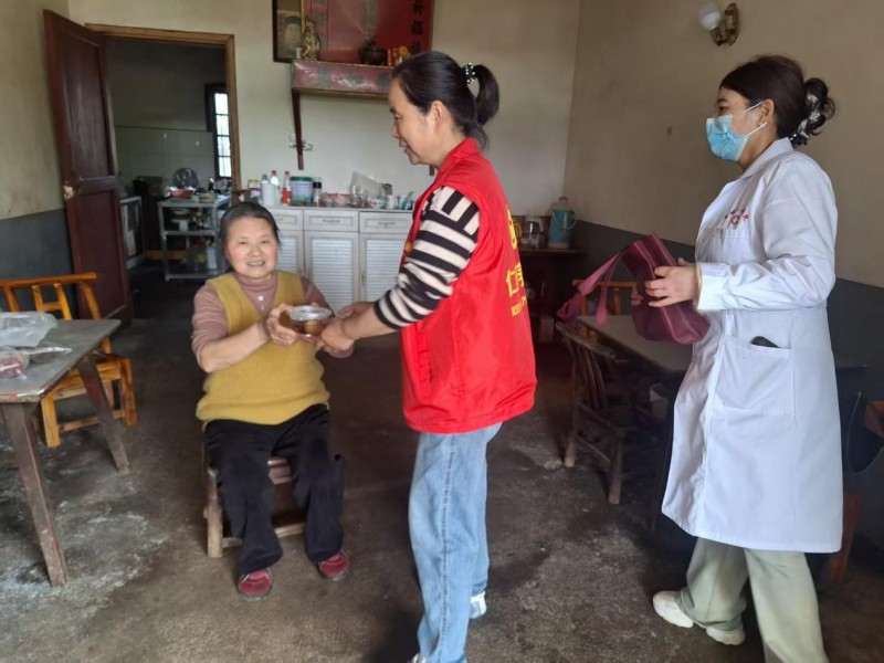 为了让行动不便的老人、独居老人、残疾人等特殊群体也能感受到节日温暖与健康关怀,社区组织医护入户关怀小组,带着煮好的地菜鸡蛋和义诊设备,上门开展探访服务。每到一户,医护人员都亲切地与服务对象交流,仔细询问他们的身体状况、日常饮食和用药情况,为他们进行细致的身体检查,现场调整用药方案、讲解康复注意事项,同时社工送上暖心的地菜煮鸡蛋,叮嘱他们春季注意保暖、合理饮食、规律作息。