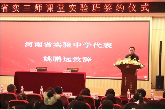 河南省实验中学代表姚鹏远表示,将充分发挥自身在教育资源整合与三师教学模式上的成熟经验,为郑航实验高级中学引入名校优质教学资源,传递先进办学理念,助力两校深化合作、携手共进,树立区域教育协同发展的新标杆。