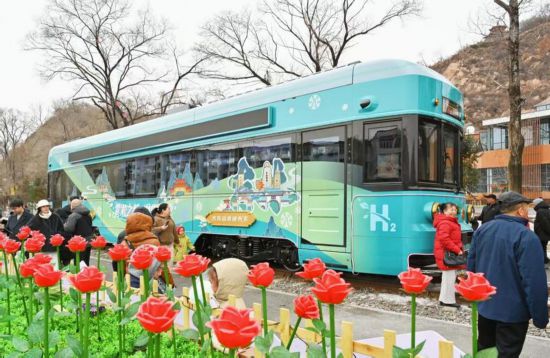 春节期间,吉林市“氢凇号”氢能源文旅观光列车,正式载客试运营,成为全国首列运营的氢能文旅观光列车 图片来源:吉林市融媒体中心
