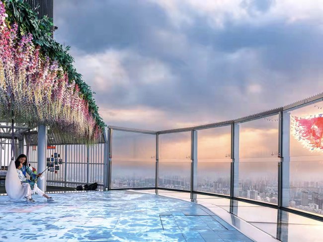 ● 垂直地面268米的“5D玻璃观景平台”,搭载声光电及真实晃动效果,既是饱览城市天际线的绝佳点位,也是游客拍摄城市之巅大片、浪漫表白的网红地标。