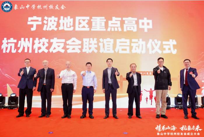 4月18日,浙江省象山中学杭州校友会成立大会在杭州黄龙饭店隆重举行。四百多位在杭校友跨越山海,齐聚西子湖畔,重温青春记忆,共叙同窗情谊,携手开启"象中人"在杭城的崭新篇章。象山县委领导、象山中学校友总会代表、母校教师代表及宁波市其他重点高中杭州校友会代表应邀出席,共襄盛举。