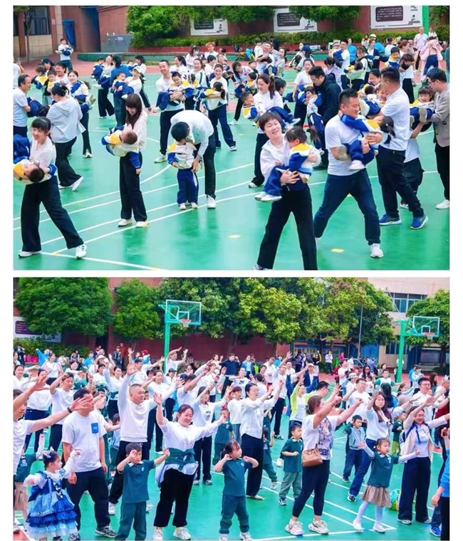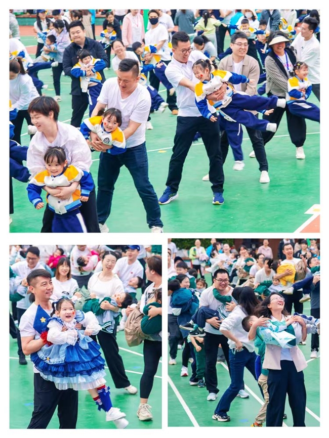 在体智能教师的专业组织与带领下,趣味亲子游戏环节正式开启。家长与幼儿默契配合、同心协作,在趣味比拼中挥洒汗水、乐享运动,在亲密互动中增进情感联结,既展现了健康向上的精神风貌,也让家园共育的理念在欢乐中落地生根,为孩子们的童年留下温暖而有力的成长印记。