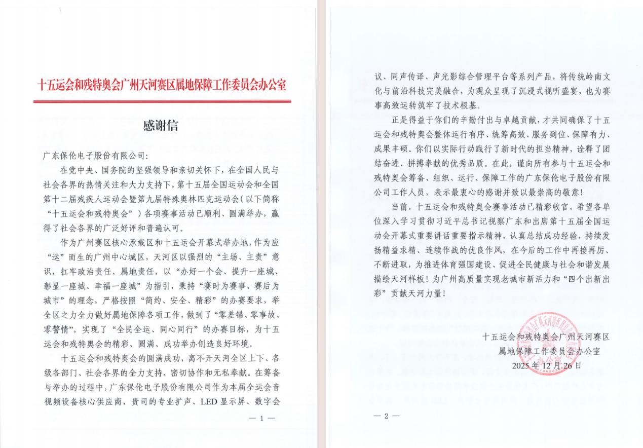 信中指出,itc的产品与解决方案将传统岭南文化与现代科技完美融合,为赛事成功举办筑牢了技术根基,信中还特别强调了itc售后团队的专业与敬业精神,他们赛前深入细致的调试、赛时24小时不间断的技术值守与快速响应,生动诠释了“简约、安全、精彩”的办赛要求。这封感谢信,不仅是一份荣誉,更是对itc技术实力、产品品质、标准化服务体系及重大活动保障能力的权威认可。