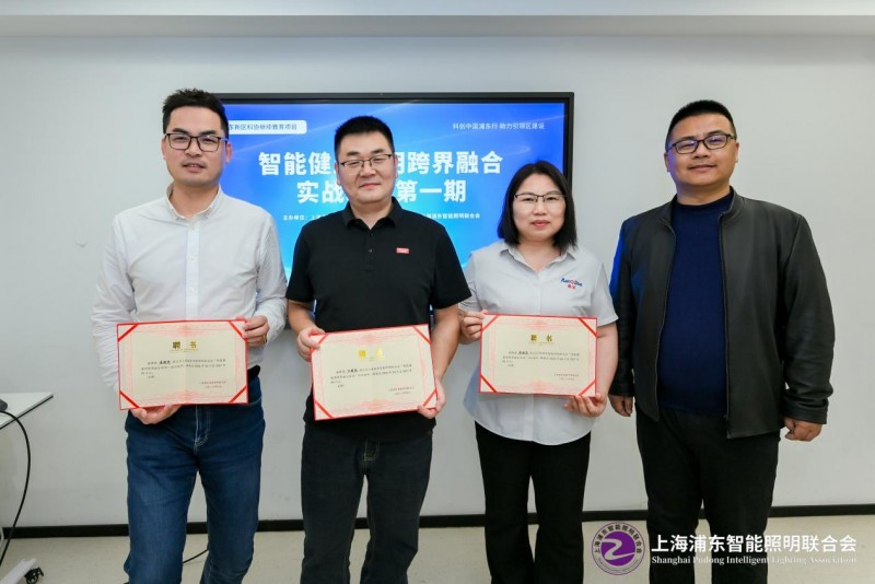 在聘书发放仪式上,上海浦东智能照明联合会会长代照亮、秘书长叶小钰分别为讲师团颁发聘书。