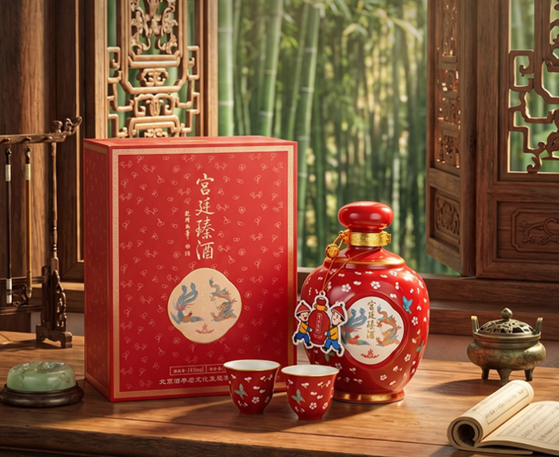 一瓶十年金奖黄酒,一对复刻故宫纹样的龙凤对杯,一张触碰即启的NFC数字祥瑞卡——商务馈赠,传递敬重;婚礼贺喜,寄托和美;敬呈长辈,表达孝心。宫廷臻定位“高端文化礼品”细分赛道,让文化真正成为礼物背后的核心价值。