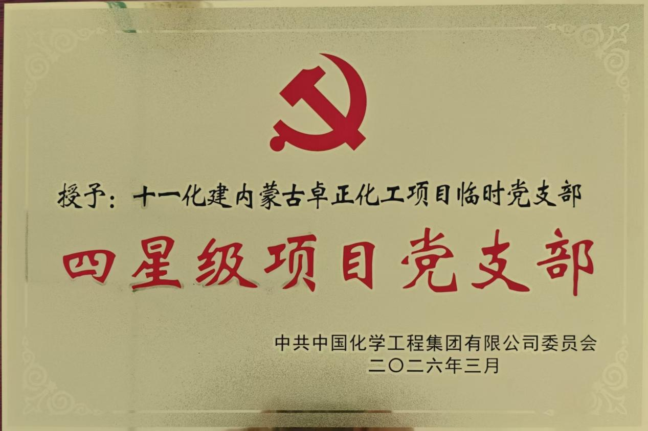 近日,中国化学工程第十一建设有限公司西北分公司承建的内蒙古卓正化工项目临时党支部凭借出色的基层党建工作和项目建设成果,被集团公司授予“四星级项目党支部”荣誉称号。 这一荣誉的获得,不仅是对项目临时党支部战斗堡垒作用的充分肯定,更是该项目以高质量党建引领高质量建设的生动写照。