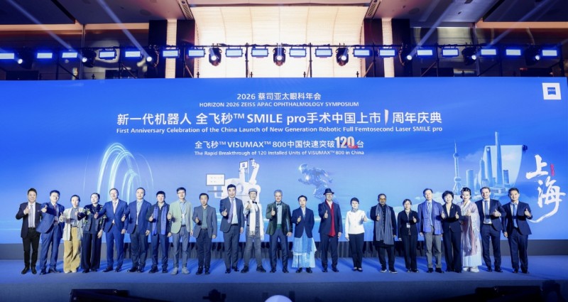 2026年4月18日晚,在上海举行的蔡司亚太眼科学术峰会(HORIZON 2026)晚宴上正式宣布:新一代机器人全飞秒™ VISUMAX 800在中国上市满一周年,全国装机量突破120台,以令人惊叹的行业速度书写了中国屈光手术领域高质量发展的新篇章。