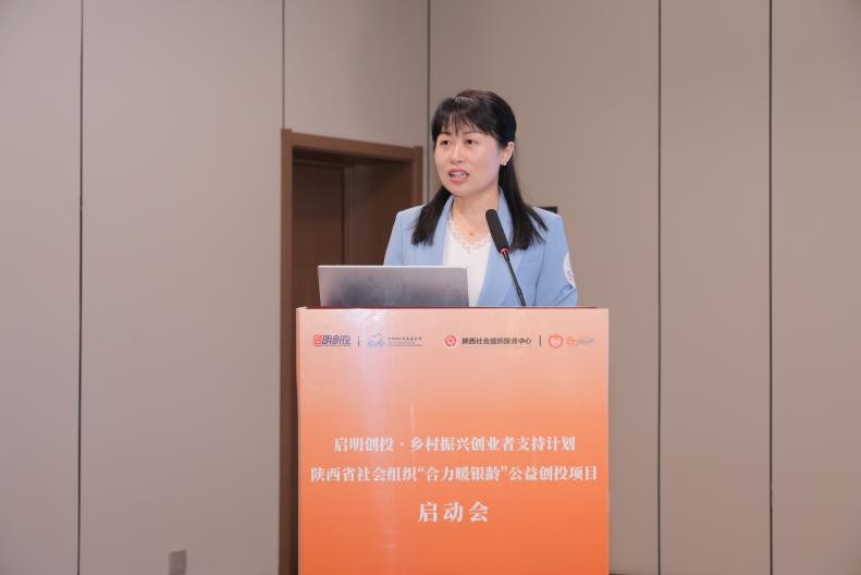 启动会上,陕西省民政厅社会组织党委委员、陕西社会组织服务中心主任王娜详细解读了“合力暖银龄”项目的内容及招募方案。启明创投·乡村振兴创业者支持计划——陕西省社会组织“合力暖银龄”公益创投项目将在陕西省择优选拔10家县域社会组织,提供连续3年的支持,助力社会组织更好地服务乡村社会事业。