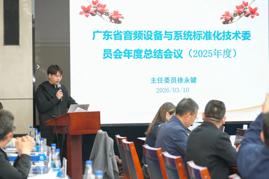 会上,省音标委主任委员徐永键 作了《广东省音频设备与系统标准化技术委员会2025年度工作总结报告》。系统汇报了过去一年在省、市、区市场监督管理局的指导下,全体委员及秘书处的共同努力下,省音标委在标准制修订、宣贯培训、组织建设及对外交流等方面取得的显著成绩,并对2026年的重点工作进行了规划部署,主要包括推进重点领域标准制修订、完善标准体系建设与维护、强化标准实施效能、深化湾区协同合作及加强标委会自身建设等方面。