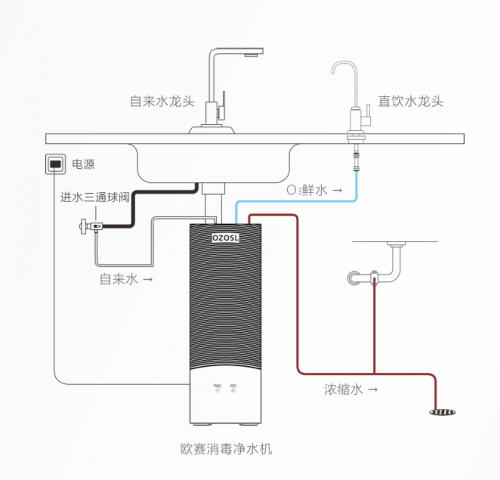 欧赛净水器将低压水解臭氧技术与净水需求深度结合,彻底解决了传统净水器的诸多痛点。传统RO反渗透净水器仅能物理拦截杂质,无法主动杀灭致病菌,长期使用还可能因管路滋生细菌形成生物膜,造成二次污染;而欧赛净水器通过低压水解臭氧技术,利用臭氧的强氧化性,可快速穿透细菌细胞壁,破坏其代谢酶系统,实现99.99%以上的杀菌率,有效杀灭水中有害微生物达到国家饮用水标准(GB-19298-2014)。