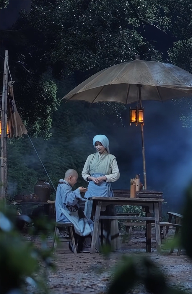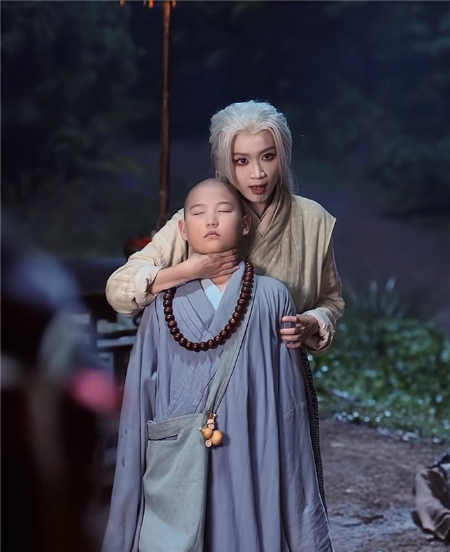 "灵童磨牙"是跟在桃夭身边的萌系小和尚——原著设定里,他曾是金佛寺的孤儿,家寺尽毁之后被桃夭所救带回桃都,自此年岁不增:外表是六七岁孩童的澄澈,内里却承载着远超年龄的伤痕与通透。这种"外萌内稳"的反差,对饰演者既要求童真可爱,又要求情绪分量。值得关注的是,恒少此次在《百妖谱》中并未承担武打戏,戏核全部落在哭戏、温情戏与细腻的情感对手戏上——对一位以功夫为底色的小演员而言,是一场不折不扣的文戏考验。据剧组反馈,他在片中不靠台词堆叠,而以眼神与呼吸承载人物情绪:长镜头下的克制、哭戏中的层次推进、对手戏里对节奏的接续,都能看出他在文戏上的用心打磨。把多年习武练就的专注力与身体感知力带进文戏,让这位习武出身的小演员呈现出一份难得的静气——能文能武,是恒少交给磨牙这个角色最珍贵的底牌。