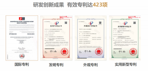 截至2025年,品牌累计获得423项有效专利,其中包含212项发明专利。