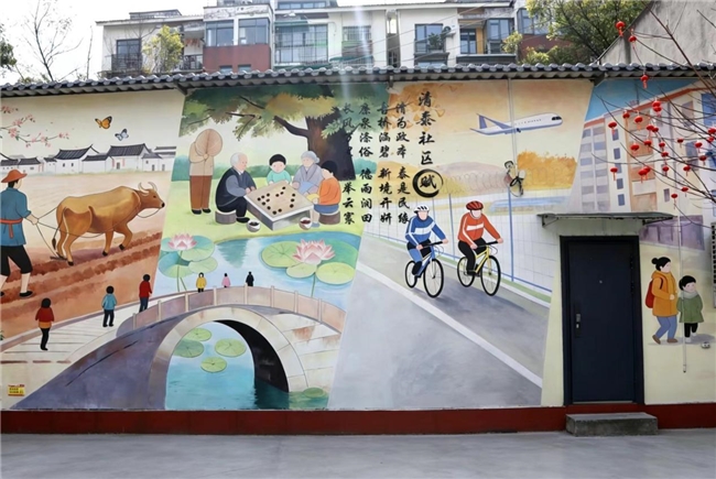 绘就时代画卷,“清泰印象”文化墙诉说变迁与发展。 文化墙以“艺术+历史+互动”为理念,采用“年代叙事+季节意象”双线索融合,将春耕秋收、居民生活等画面徐徐展开。从清泰桥的石板路到空港绿道,从传统村落到商品房小区的和谐共治,这面文化墙浓缩了清泰社区从乡村到城市、从传统到现代的蝶变历程。它不仅美化了人居环境,更成为居民感知社区发展脉动、凝聚奋进力量的生动课堂。