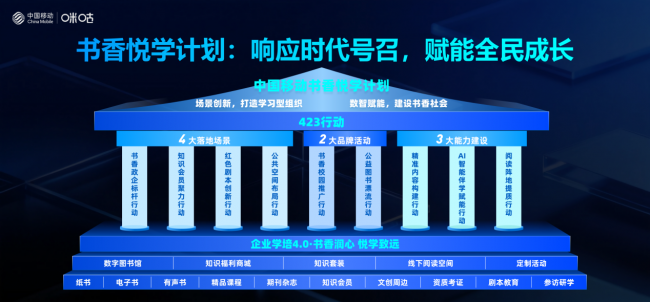 书香悦学,智启新程。立足全民阅读,中国移动咪咕在企业数智化学习领域深耕细作,已累计服务金融、能源、交通等十大行业、200余家头部企业,覆盖员工超200万人,凭借专业的服务与创新的理念,在行业内树立了良好的口碑。面向未来,咪咕公司将继续秉持央企使命,以书香润心,让悦学致远,携手产业共筑书香企业、共建书香社会、共谱文化强国建设的新篇章。