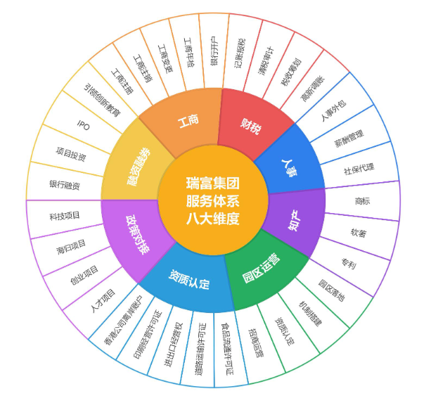 瑞富集团由会计师、税务师、人力资源管理师、创业导师、企业高级顾问组成核心团队,搭建起工商、财税、人事、知产、园区运营、资质认定、政策对接、融资融券八大服务体系,以及人才项目、创业项目、海归项目、科技资质、科技创新载体、双创平台六大政策体系,覆盖企业从注册成立、运营管理到成长壮大的全流程。依托成熟的财税管理系统与创业辅导体系,集团已服务企业超千家,精准解决创业痛点、降低运营成本、提升经营效益,成为中小企业稳健发展的坚实后盾。