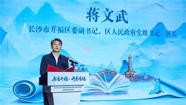 长沙市开福区委副书记、区长蒋文武在致辞中表示,希望大家以书为友,以读为伴,共同深耕“书香开福”沃土,让千年文脉在阅读中赓续,让文明风尚在书香中传递,为开福高质量发展注入源源不断的精神动能。
