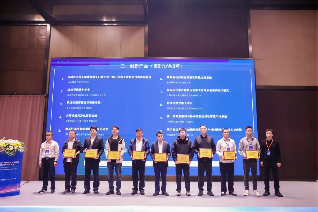 开幕式后,大会举行了隆重的“十四五”期间轨道交通科技创新成果评选颁奖仪式。经严格评审,共81项优秀成果脱颖而出,分为三大类别:优秀应用案例32项、优秀解决方案25项、创新产品24项。获奖成果覆盖全国30多个城市、100余家轨道交通企事业单位,涉及城轨智慧运维、节能环控、减振降噪、智能供电、安全检测等关键领域。