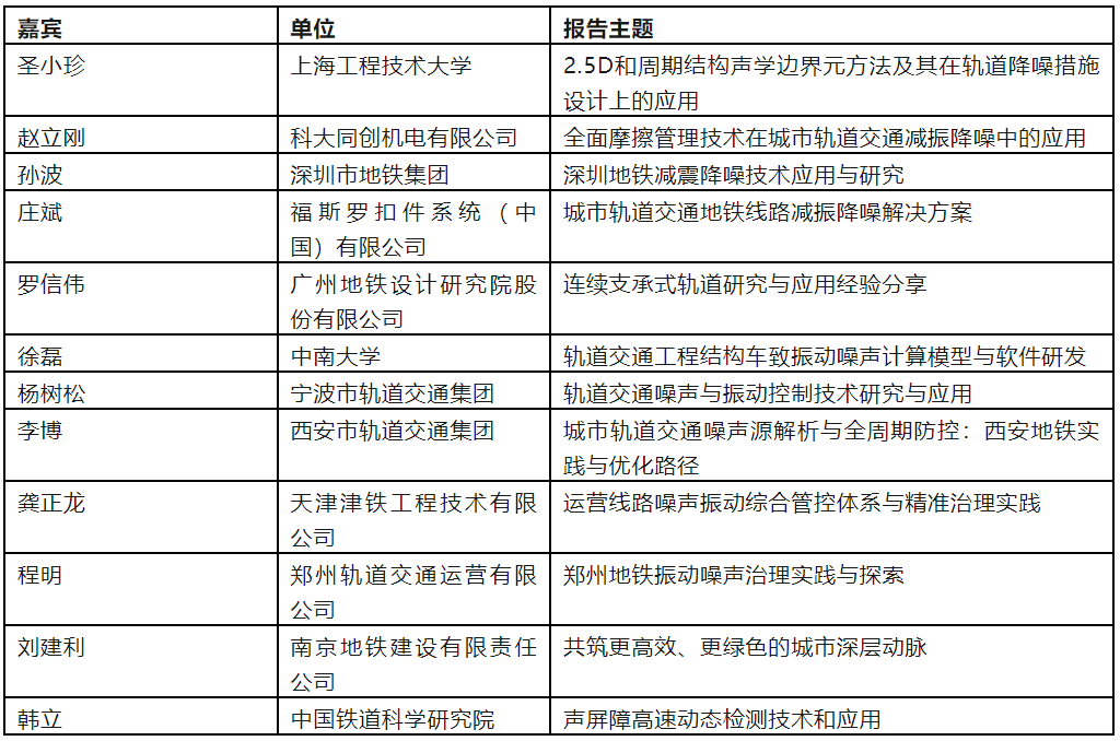 主题:城市轨道交通减振降噪——技术、实践与协同创新