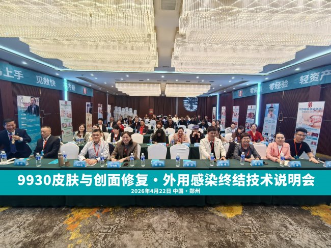 4 月 22日,玖玖三灵(9930)生物技术有限公司在郑州德亿大酒店成功举办 “9930皮肤与创面修复·外用感染终结技术”。本次会议原计划邀请 70 人,实际到场过100 人,参会嘉宾涵盖本地及周边企业家、执业医师、卫健委与医保系统相关人士、中医美容及大健康行业精英,全场座无虚席、反响热烈。
