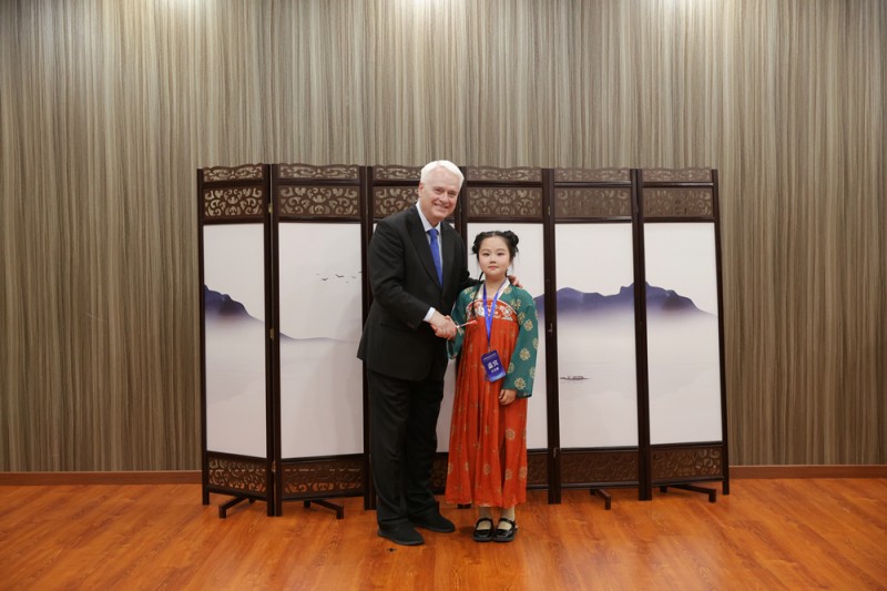 表演结束后,汪诗雅与克罗地亚前总统伊沃·约西波维奇阁下亲切合影留念。总统现场对她流利标准的英文表达、大方沉稳的舞台表现和真挚朴实的家乡推介给予高度肯定与由衷赞赏,连连夸赞这位客家小姑娘自信阳光、谈吐优秀,小小年纪胸怀家乡、心系中外友好,是名副其实的优秀少年文化使者。近距离互动与暖心鼓励,让这次国际交流之行更加意义非凡、珍贵难忘。