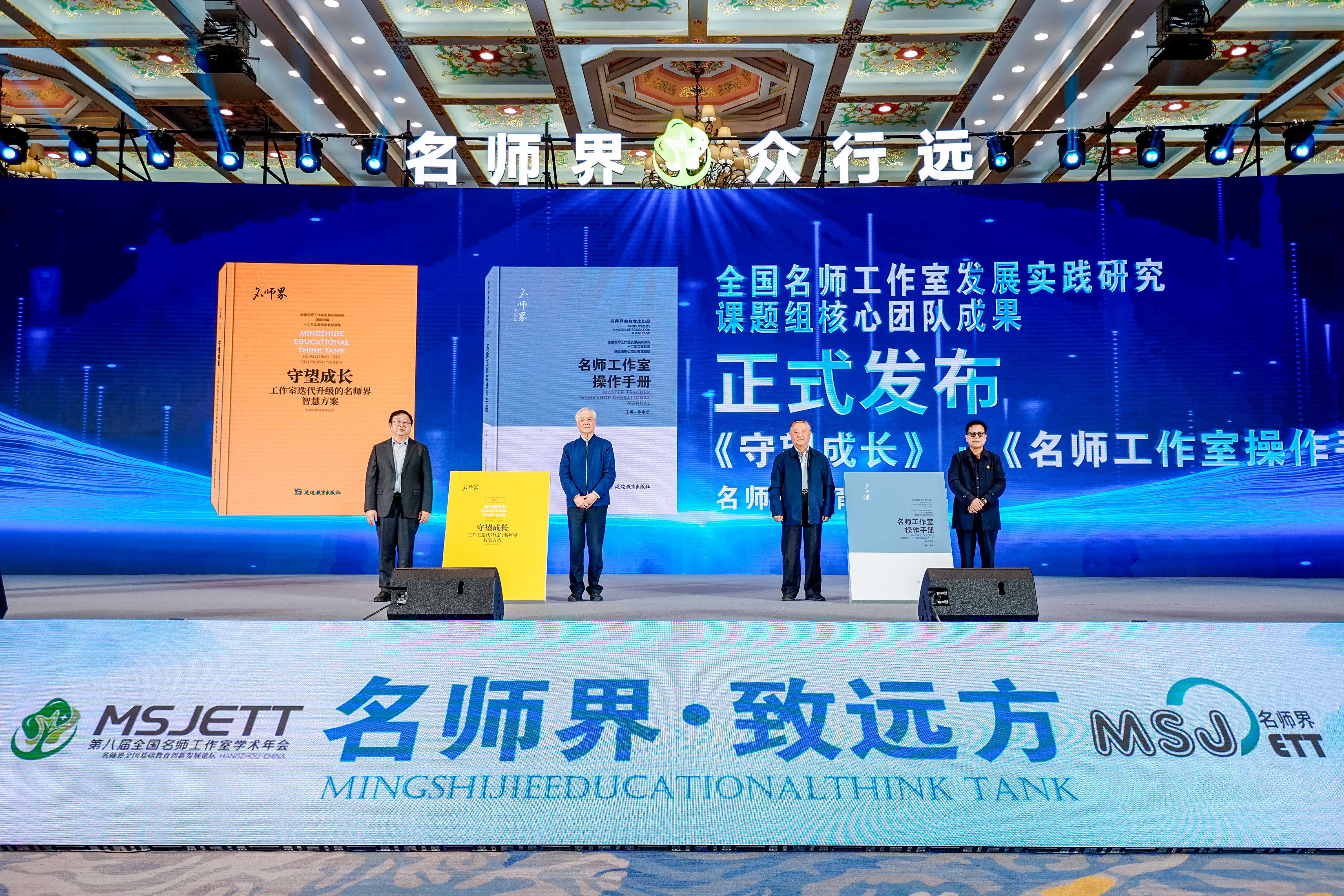年会的高潮之一,是全国名师工作室发展实践研究课题组两项核心成果的隆重发布:《守望成长——工作室迭代升级的名师界智慧方案》与《名师工作室操作手册》。在成尚荣、魏续臻、金昌珍、朱孝忠四位嘉宾的共同揭幕下,这两部凝聚了课题组多年心血的著作正式面世。