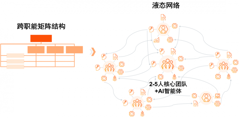 为加速创新,企业亦会设立独立的AI原生团队,采用极度扁平的管理结构,减少层级审批。资源配置与团队组合也将更加实时化、动态化,根据项目需求快速流动与重组,打破部门墙壁垒,加快AI项目落地的速度。