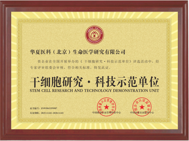 作为“国家干细胞研究·科技示范单位”与“中国大健康行业·AAA 级诚信单位”,华夏医科(北京)生命医学研究始终坚守“科技赋能、科技向善、科技共享、科技协同”的价值观,以“将前沿生命医学技术服务人民生命大健康” 为使命。