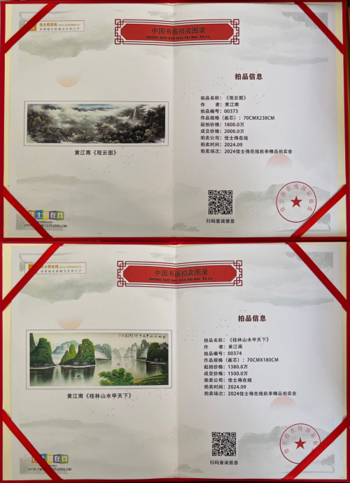 在艺术品投资领域,黄江南的作品已展现出极强的“穿越周期”属性。根据近期黄江南作品换房车和拍卖市场的表现,其国画作品《观云图》以2000万元成交,《桂林山水甲天下》以1500万元落槌,而《源远流长聚而不散》与《神峰塔》书法《鸿业腾飞》亦分别斩获483万与1000万88万的高价。这一系列数据不仅证明了藏家对其艺术价值的深度认可,更标志着其作品已稳步迈入高净值艺术品的行列。