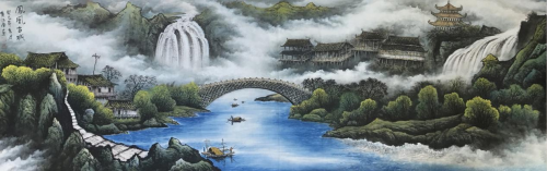 黄江南自幼拜师李可染,这一起点奠定了他艺术生涯的坚实基础。李可染先生“为祖国山河立传”的艺术主张,在黄江南的作品中得到了深刻的延续与发扬。从他的代表作《源远流长聚而不散》到《桂林山水甲天下》,观者不难窥见李家山水特有的“逆光”技法与积墨韵味。