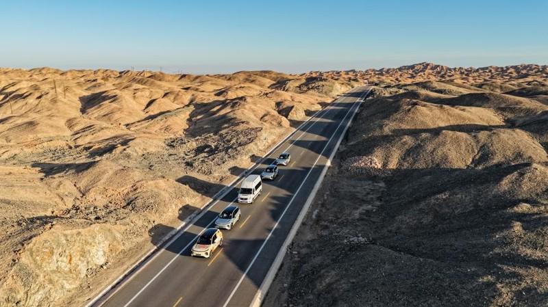 当日11:00,文物运输车及护航车队正式启程,从大漠绿洲到河西走廊,从雄关漫道到千里通途,长安启源车队一路向东,穿行于壮阔的西北风光之间。苍茫天地间,车队如一条流动的文明纽带,肩负守护使命,一路护航,一路向前,成为丝路古道上一道格外醒目的风景。