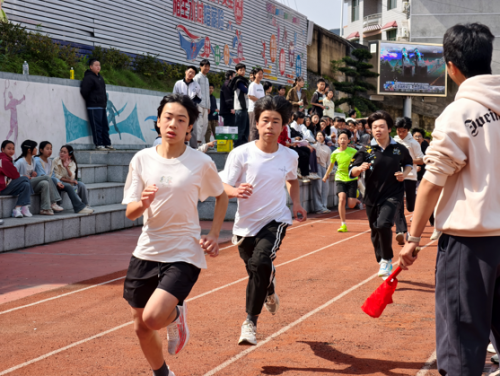 接力赛中,各班默契配合、你追我赶,将现场气氛推向顶点。