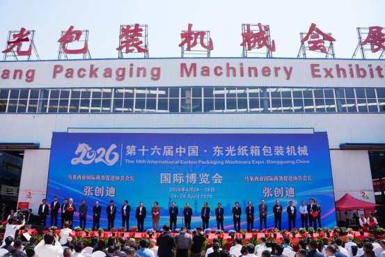 2026 年 4 月 24 日,以"智汇东光 引领包装"为主题的第十六届中国·东光纸箱包装机械国际博览会在中国东光包装机械会展中心开幕。这场汇聚全球包装机械行业智慧的盛会,由河北省产学研合作研究会主办,东光县建业包装机械有限公司、沧州市包装机械商会、东光县纸箱包装机械制造联合会、东光县包联纸箱机械展销公司联合承办,采用产展融合、双会场联动的创新模式,全面展现东光在纸箱包装机械领域的 "共享智造" 最新成果。