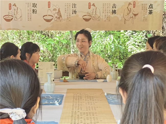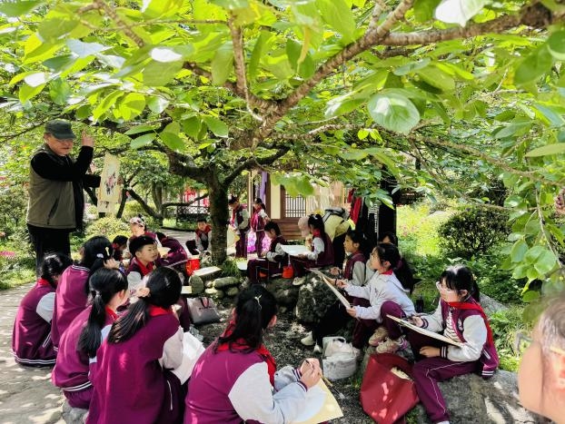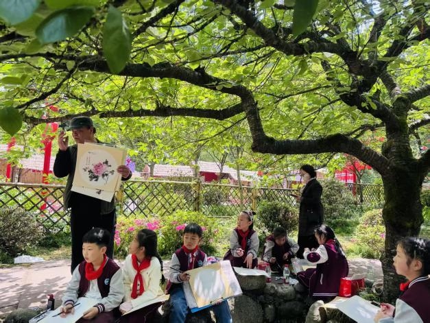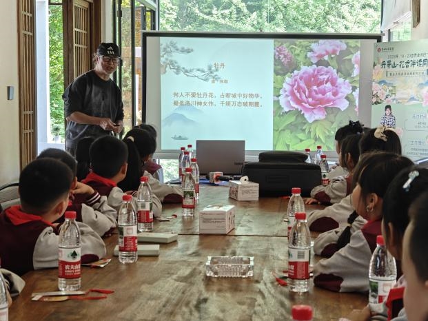 4月14日下午,丹景山春意正浓,牡丹竞放,在这片诗与花交织的土地上,“花香伴读同行”活动温情开展,将自然胜景与文化雅集完美相融。著名阅读推广人夏昆老师正与孩子们围坐一堂。他从唐诗宋词中采撷牡丹佳句,赏析千古名篇的灵动韵味,指导写作创作的妙法巧思,让文字的力量在花间流淌;四川省美术家协会会员张晓波执笔相授,以丹青妙笔绘就牡丹的雍容之态、高洁之魂,更在绘画开篇融入“绿书签”科普,引导孩子们远离盗版、守护正版阅读的纯粹;国家高级茶艺师蔡燕则带来盏中点茶雅艺,一斟一酌间,尽显“盏中丹青”的东方美学,让市民在茶香氤氲里,静享阅读与非遗交织的悠然时光。