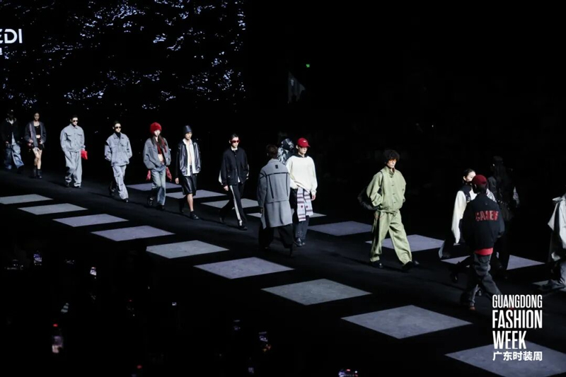 凯施迪本次大秀:取岭南花城之雅、醒狮永春之刚,将岭南木棉花、醒狮、武脉转译为当代男装穿着语言。