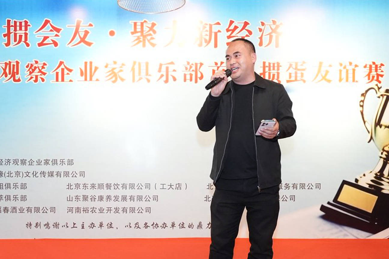 近日,由中国新经济观察企业家俱乐部主办、中视汇缘(北京)文化传媒有限公司承办、掼蛋一姐俱乐部、京英汇萃俱乐部、北京东来顺餐饮有限公(工大店)、北京通达远汽车修理有限公司、山东聚谷康养发展有限公司、山东六福春酒业有限公司、河南裕莊农业开发有限公司、北京和谐君源科贸有限公司、美了个佳美业电商平台等联合协办的“以掼会友·聚力新经济”首届掼蛋友谊赛暨朝阳服务中心授牌仪式,在北京东来顺餐饮有限公司(工大店)成功举办。活动以“掼聚精英、智赢未来”为主题,汇聚行业领军人物、企业家代表及各界嘉宾共120人出席,以牌为媒、以赛联谊,共话合作机遇,共促产业协同。