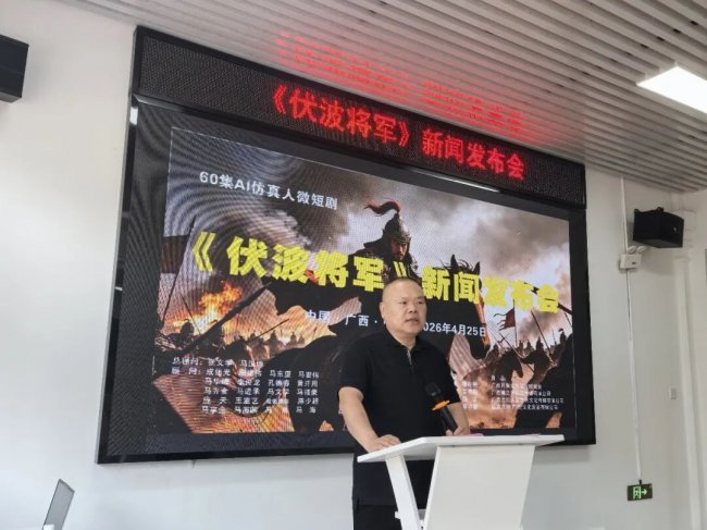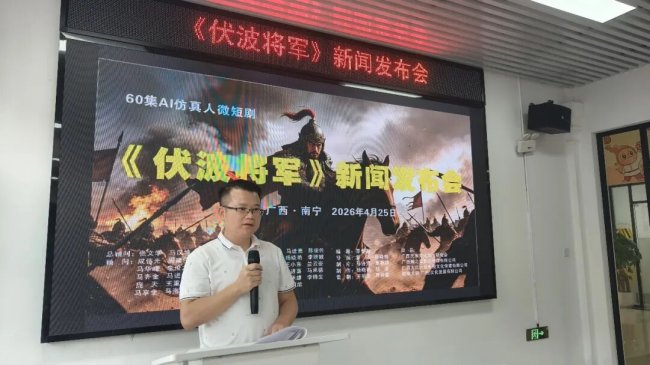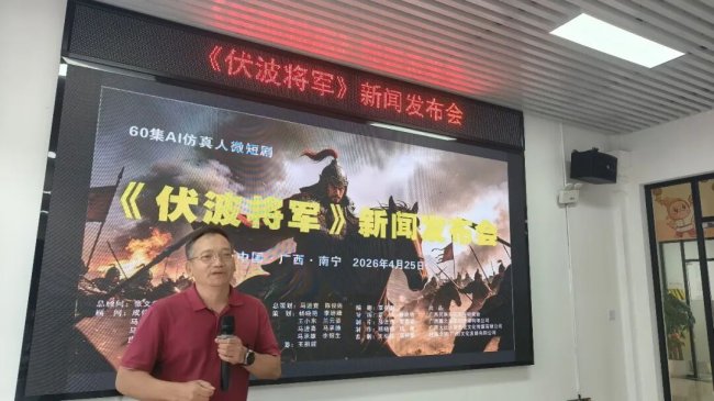 2026年4月25日下午,由广西民族文化发展研究会牵头,联合桂族文研(广西)文化发展有限公司、广西瀚之星影视传媒有限公司、广西大红大紫影视文化传媒有限公司共同打造的60集AI仿真人历史微短剧《伏波将军》新闻发布会在南宁成功举办。该剧是一部以AI仿真人技术全流程制作,讲述东汉伏波将军马援传奇一生的60集历史微短剧。旨在以科技创新活化历史,传承“伏波精神”,打造正能量文化IP,探索文化传承与产业发展的新模式。