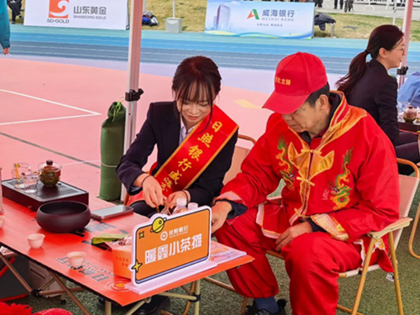上午9时,开幕式正式拉开序幕。气势恢宏的千人太极、充满胶东风情的丰收鼓乐等文体节目精彩上演,充分展现了胶东风情与好客山东的热情。为全力服务好本次盛会,日照银行威海分行在主会场主席台两侧设置了“暖鑫集市”“暖鑫茶摊”及“暖鑫金融”,将暖心服务与金融便民送到会场。