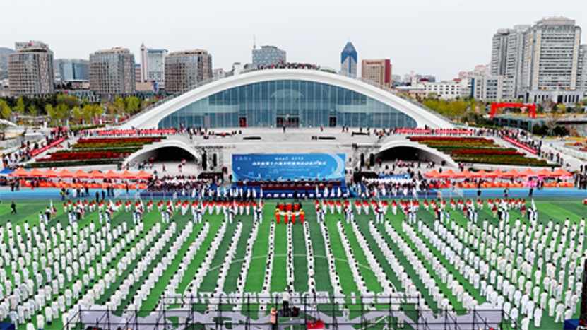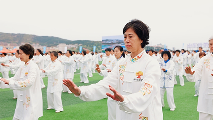 千人太极拳展演的部分参演人员身着日照银行“阳光银龄”定制太极服饰,成为开幕式上一道亮眼的银发风景。