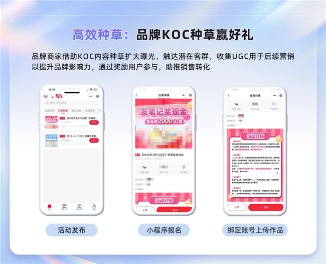 品牌可在后台发起种草任务,激励真实用户产出优质笔记;同时筛选优质 KOC 沉淀私域,形成内容反哺流量的正向循环,提升口碑与信任度。
