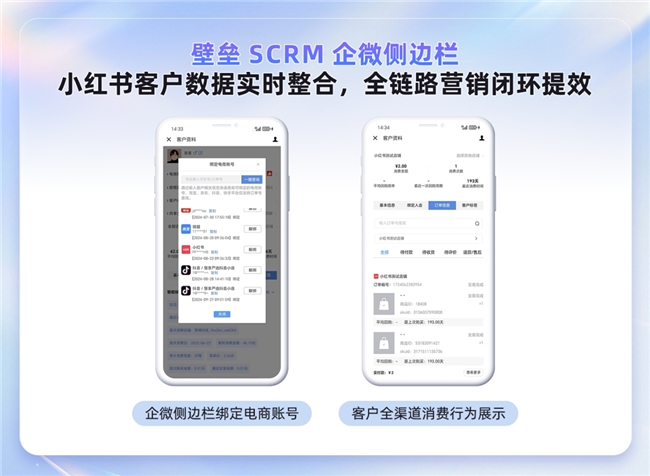依托慧博 SCRM 企微侧边栏,客服可一键查看小红书会员画像、订单记录、互动轨迹,无需多平台切换即可完成精准触达与高效运营,提升转化与服务效率。