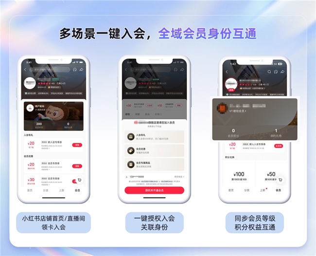 支持小红书店铺快速接入,自动同步订单与会员数据;通过手机号、设备号统一用户 ID,老会员自动识别、新会员一键入会,会员权益全域实时同步,彻底解决多平台体验割裂问题。