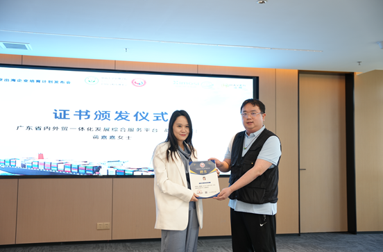现场同步举行证书颁发与揭牌仪式:长沙希莫斯科技有限公司、深圳星睿出海投资控股有限公司获授广东省内外贸一体化发展综合服务平台执行单位证书;蒋嘉嘉女士获聘平台战略顾问;广东省内外贸一体化综合服务平台佛山运营中心正式揭牌,标志着出海服务实现就近化、专业化、常态化,为珠三角制造企业提供更便捷的支持。