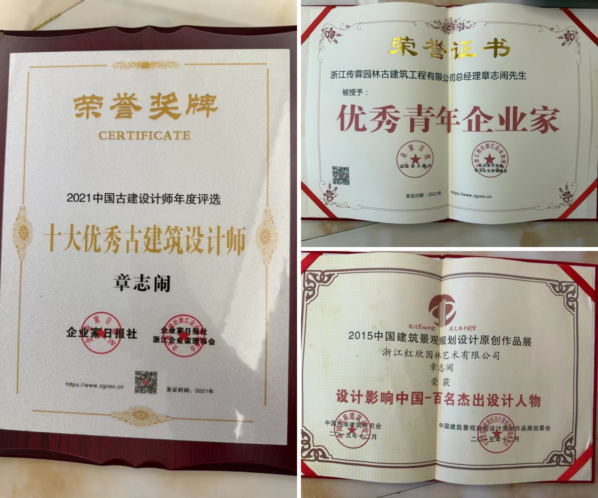 平阳廣慧寺、义乌瑞云寺、萧江鼓楼、以及平阳陈嵘纪念馆、平阳鲍辉纪念馆、龙港市高氏纪念馆等多项重点古建工程,都由他细心设计深化。他让传统技艺与现代科技相融,既保留匠人匠心,又提升施工效率,让老行当焕发新生。