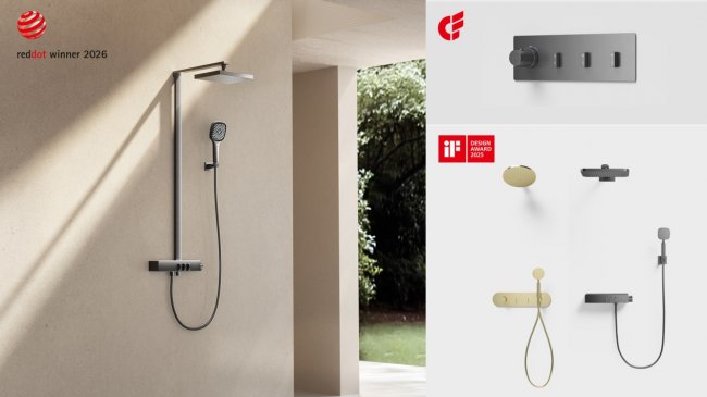 这是丰华卫浴GoSlide推钮类花洒继斩获2025 iF Design Award与中国出口产品设计奖之后,再次获得国际设计领域认可。
