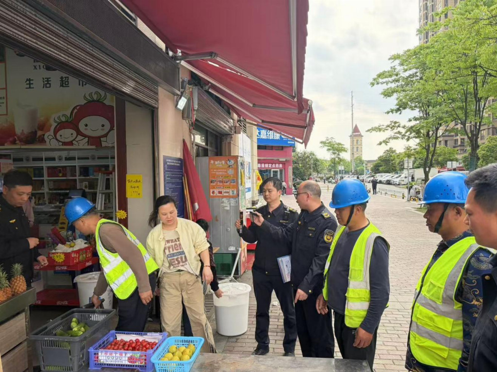 不同于以往的“一刀切”式清理,白沙洲街道综合行政执法大队结合辖区商业街实际人流高峰与经营特点,采取分时管控模式。执法人员每日在不同时段,重点对绿地香树花城商业街、欢喜街两侧的餐饮、超市等门店进行动态巡查。针对早餐、烧烤等易产生店外经营的餐饮业态,执法队员做到“早发现、早提醒、早清理”,既减少了执法冲突,也避免了问题积累。行动中,执法人员耐心向商户讲解相关法律法规,并督促其严格落实《规范责任区环境卫生秩序告知书》要求,做到“门前清、不占道、不乱摆”。